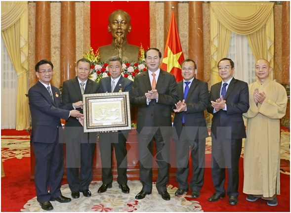 Sáng 27/3, tại Phủ Chủ tịch, Chủ tịch nước Trần Đại Quang đã có buổi tiếp Đoàn đại biểu kiều bào Việt Nam và Phật giáo An Nam tông tại Thái Lan nhân dịp đoàn về thăm và làm việc tại Việt Nam.