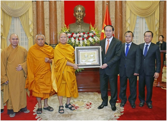 Nhân dịp này, Chủ tịch nước Trần Đại Quang đánh giá cao Ủy ban Nhà nước về người Việt Nam ở nước ngoài (Bộ Ngoại giao) đã phối hợp với Trung ương Giáo hội Phật giáo Việt Nam và Đại sứ quán Việt Nam tại Thái Lan tổ chức chương trình về thăm và làm việc tại Việt Nam của đại biểu kiều bào và Phật giáo An Nam tông tại Thái Lan. Đây là sự kiện hết sức có ý nghĩa, thông qua các hoạt động tôn giáo, tín ngưỡng góp phần thúc đẩy ngoại giao văn hóa, tăng cường quan hệ hữu nghị giữa Việt Nam với Thái Lan và hỗ trợ, tạo điều kiện thuận lợi để cộng đồng người Việt ở Thái Lan ổn định, hội nhập và phát triển ở nước sở tại.