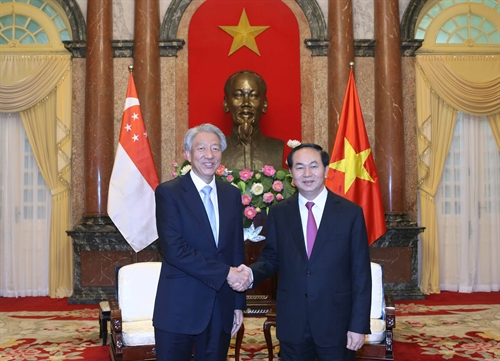 Chủ tịch nước Trần Đại Quang tiếp thân mật Phó Thủ tướng Singapore Tiêu Chí Hiền ngày 12/9 tại Phủ Chủ tịch.
