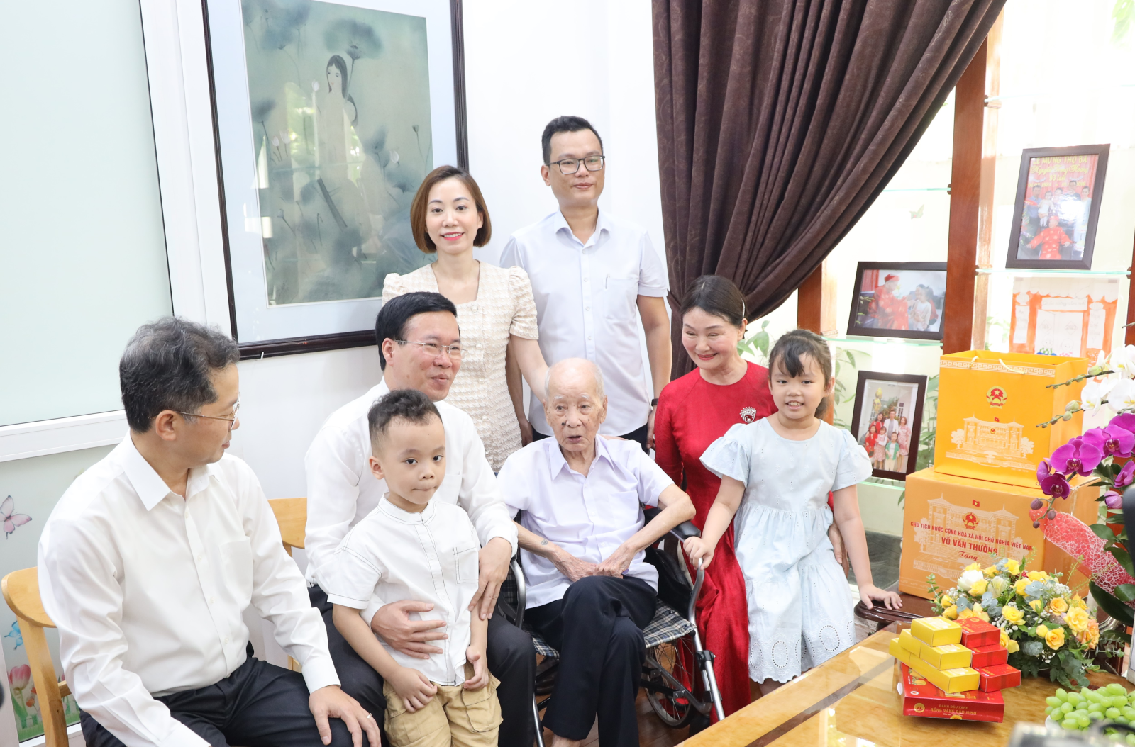 Nhân Ngày Gia đình Việt Nam 28/6, trong sáng nay, Chủ tịch nước Võ Văn Thưởng đã tới thăm và chúc mừng gia đình Nhà giáo Nhân dân Nguyễn Trọng Hoàng, sinh năm 1924, hiện sinh sống cùng gia đình, con cháu tại phường Bình Thuận, thành phố Đà Nẵng.
