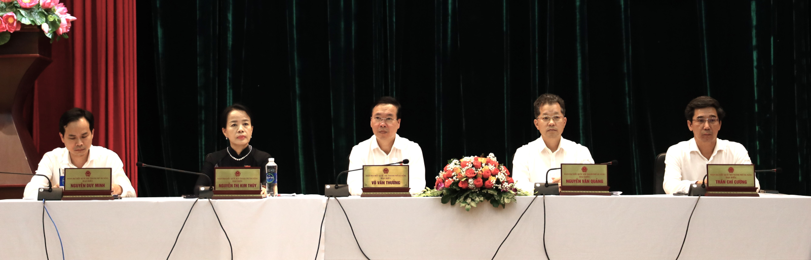 Chủ tịch nước và đoàn Đại biểu Quốc hội thành phố Đà Nẵng tiếp xúc cử tri sau Kỳ họp thứ 5, Quốc hội khóa XV. Ảnh: VPCTN