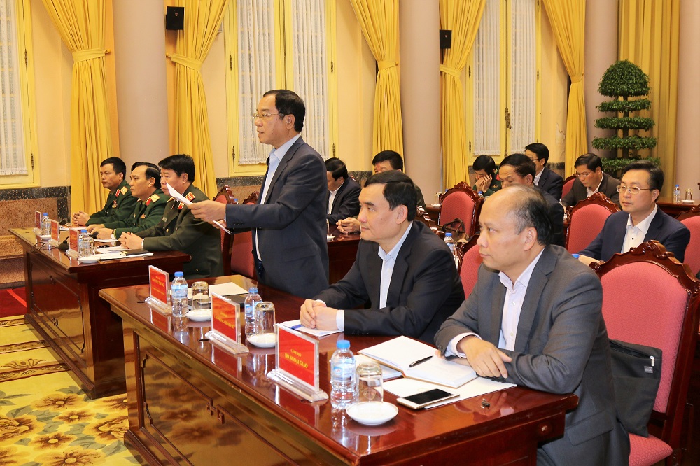Đồng tình với các giải pháp, kiến nghị, đề xuất của Bộ Quốc phòng, Bộ Công an nhằm nâng cao chất lượng, hiệu quả thực hiện nhiệm vụ quốc phòng, an ninh, đối ngoại trong thời gian tới, Chủ tịch nước Trần Đại Quang nhấn mạnh cần chú trọng tuyên truyền, nâng cao nhận thức về tình hình, nhiệm vụ quân sự, quốc phòng, an ninh trong tình hình mới và ý nghĩa, tầm quan trọng của công tác diễn tập các phương án xử lý tình huống phức tạp về quốc phòng, an ninh trong thực hiện hai nhiệm vụ chiến lược xây dựng và bảo vệ Tổ quốc. Tăng cường phối hợp, hiệp đồng chiến đấu giữa lực lượng Quân đội, Công an, Ngoại giao với các lực lượng khác nhằm huy động sức mạnh tổng hợp của cả hệ thống chính trị và toàn dân trong thực hiện nhiệm vụ quân sự, quốc phòng, an ninh./.