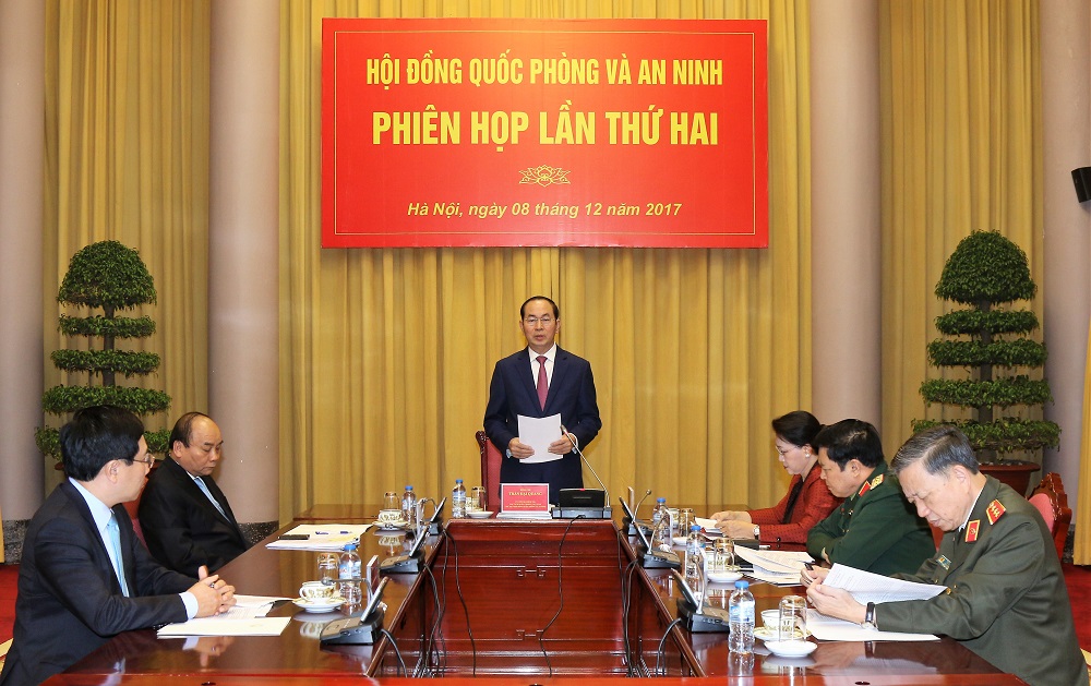 Chủ tịch nước Trần Đại Quang, Chủ tịch Hội đồng Quốc phòng và An ninh chủ trì Phiên họp thứ hai Hội đồng Quốc phòng và An ninh, nhiệm kỳ 2016-2021. (Ảnh: VPCTN)