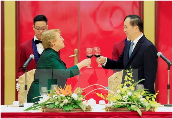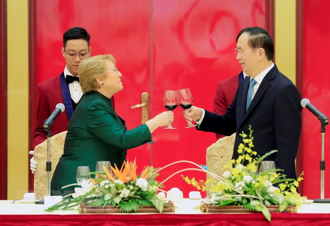 Trưa 9/11, tại Trung tâm Hội nghị quốc tế, Hà Nội, Chủ tịch nước Trần Đại Quang đã chủ trì tiệc Quốc yến trọng thể chào mừng Tổng thống Michelle Bachelet và Đoàn đại biểu cấp cao nước Cộng hòa Chile thăm cấp Nhà nước tới Việt Nam.