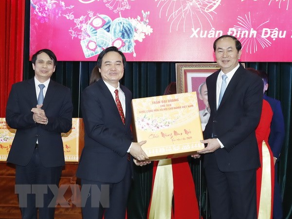 Trong không khí mừng Đảng, mừng Xuân Đinh Dậu 2017, chiều 4/2 (mùng 8 tháng Giêng năm Đinh Dậu), Chủ tịch nước Trần Đại Quang tới thăm làm việc, chúc Tết tập thể cán bộ, nhà giáo, công chức, viên chức ngành Giáo dục.