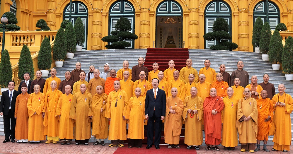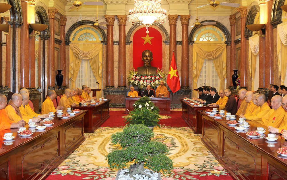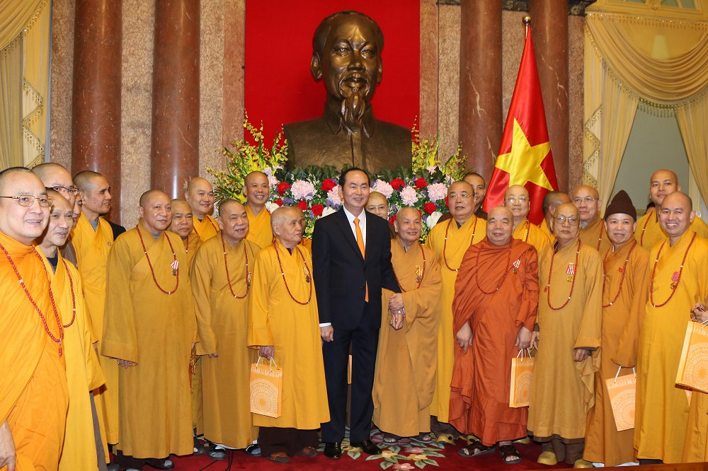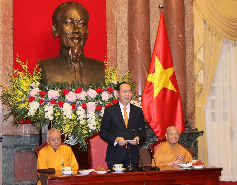 Chủ tịch nước Trần Đại Quang khẳng định, Đảng, Nhà nước và nhân dân luôn ghi nhận, đánh giá cao, trân trọng biểu dương và chúc mừng những kết quả, đóng góp thiết thực, đầy ý nghĩa của Giáo hội Phật giáo Việt Nam và toàn thể tăng ni, phật tử đối với sự nghiệp đại đoàn kết toàn dân tộc, xây dựng và bảo vệ Tổ quốc Việt Nam xã hội chủ nghĩa trong thời gian qua.