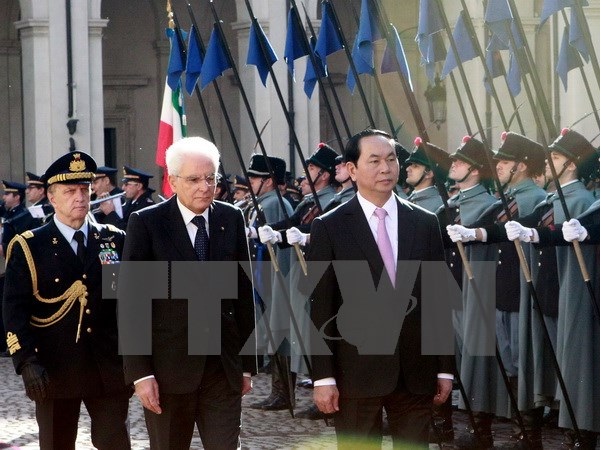 Chủ tịch nước Trần Đại Quang đánh giá quan hệ Việt Nam-Italy đang phát triển rất tốt đẹp, nhất là kể từ khi hai nước ký Tuyên bố chung về Đối tác chiến lược tháng 1/2013. Italy hiện là một trong những đối tác thương mại châu Âu lớn của Việt Nam với tổng kim ngạch tăng nhanh, từ 3,4 tỷ USD năm 2013 lên 4,3 tỷ USD năm 2015; Việt Nam là đối tác thương mại lớn nhất của Italy trong số các nước Hiệp hội các quốc gia Đông Nam Á (ASEAN).