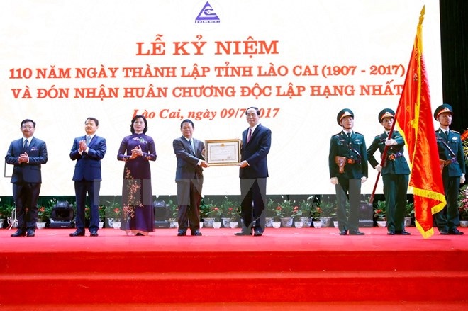 Sáng 9/7, tại thành phố Lào Cai, tỉnh Lào Cai đã tổ chức trọng thể Lễ kỷ niệm 110 năm ngày thành lập tỉnh Lào Cai (12/7/1907-12/7/2017) và đón nhận Huân chương Độc lập hạng Nhất. Chủ tịch nước Trần Đại Quang đến dự và phát biểu ý kiến chỉ đạo tại Lễ kỷ niệm.