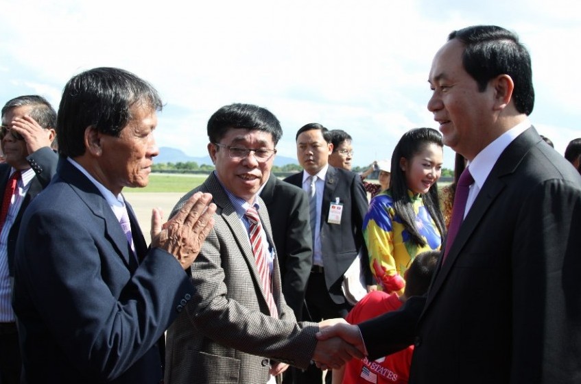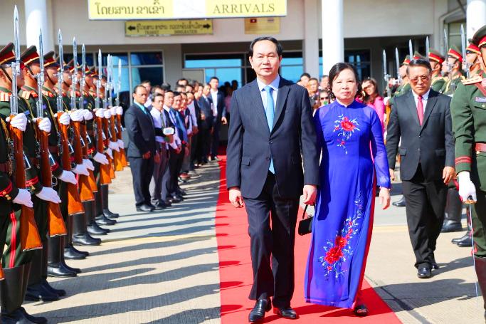 Trong khuôn khổ chuyến thăm CHDCND Lào, chiều 14/6, Chủ tịch nước Trần Đại Quang và phu nhân cùng đoàn cấp cao nước ta đã đến thăm Tổng lãnh sự quán Việt Nam tại Pắc-xế và gặp gỡ bà con Việt kiều tại tỉnh Chăm-pa-xắc.