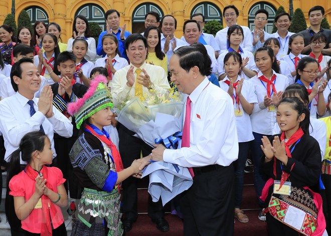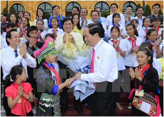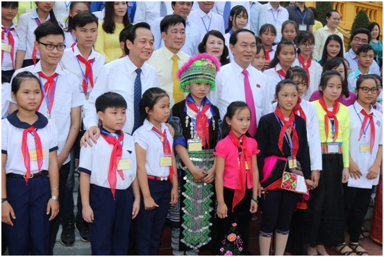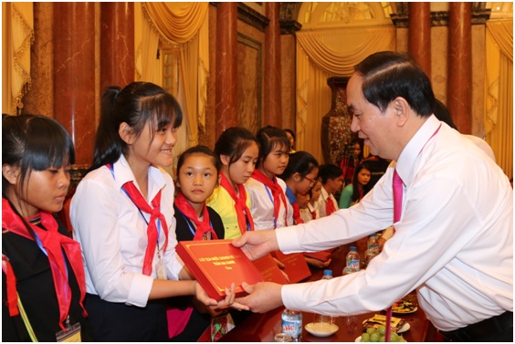 Nhân ngày Quốc tế Thiếu nhi 1/6 và hưởng ứng Tháng hành động Vì trẻ em năm 2017, chiều 26/5, tại Phủ Chủ tịch, Chủ tịch nước Trần Đại Quang đã có buổi gặp mặt 58 học sinh nghèo hiếu học, học giỏi, trẻ em có hoàn cảnh đặc biệt, khó khăn của 11 tỉnh, thành phố trực thuộc Trung ương đại diện các vùng, miền trên cả nước.