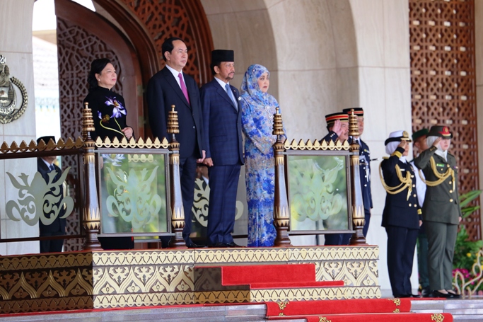 Lễ đón chính thức Chủ tịch nước Trần Đại Quang và Phu nhân do Quốc vương Bờ-ru-nây cùng Phu nhân ch - ảnh: Tấn Đức