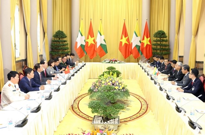 Chủ tịch nước và Tổng thống Myanmar bày tỏ hài lòng về sự phát triển của quan hệ hữu nghị truyền thống và hợp tác nhiều mặt của hai nước trong hơn 40 năm qua, trên cơ sở nền tảng được Chủ tịch Hồ Chí Minh và anh hùng Aung San gây dựng. Hợp tác chính trị đã có được sự hiểu biết và tin cậy quan trọng với việc hai bên trao đổi các chuyến thăm và tiếp xúc cấp cao. Quan hệ kinh tế, thương mại-đầu tư phát triển vững chắc. Việt Nam hiện là đối tác thương mại-đầu tư lớn thứ 10 của Myanmar. Hai bên đang tích cực triển khai 12 lĩnh vực ưu tiên là nông nghiệp, cây công nghiệp, thủyỷ sản, tài chính-ngân hàng, hàng không, viễn thông, dầu khí, khai khoáng, sản xuất thiết bị điện, chế tạo và lắp ráp ôtô, xây dựng và hợp tác thương mại-đầu tư.
