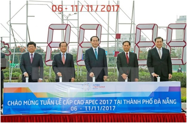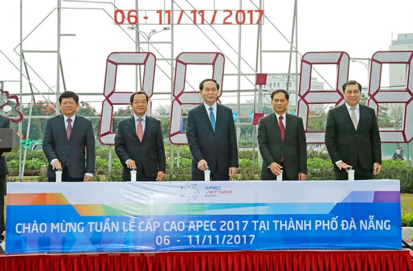 Sáng cùng ngày, Chủ tịch nước Trần Đại Quang đã tới dự lễ và bấm nút khởi động đồng hồ đếm ngược chào mừng Tuần lễ Cấp cao APEC 2017 tại thành phố Đà Nẵng.