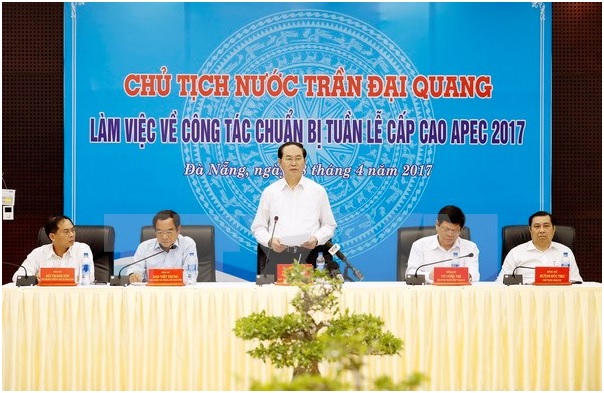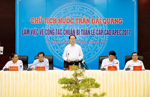 Chủ tịch nước Trần Đại Quang đánh giá cao Ủy ban Quốc gia APEC 2017, Ban Thư ký Quốc gia APEC 2017, lãnh đạo thành phố Đà Nẵng, các bộ, ban, ngành, địa phương liên quan và các doanh nghiệp trong thời gian qua đã tích cực, khẩn trương triển khai đồng bộ với tinh thần trách nhiệm cao các công việc chuẩn bị cho Năm APEC 2017, đặc biệt là Tuần lễ Cấp cao.