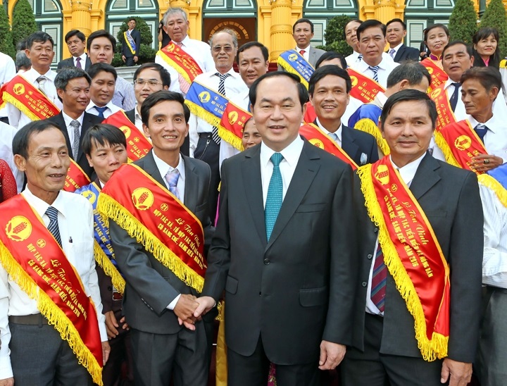 Chiều 13/11, tại Phủ Chủ tịch, Chủ tịch nước Trần Đại Quang gặp mặt 68 đại biểu hợp tác xã, tổ hợp tác tiêu biểu, nông dân có sáng chế, sáng kiến trong sản xuất nông nghiệp.