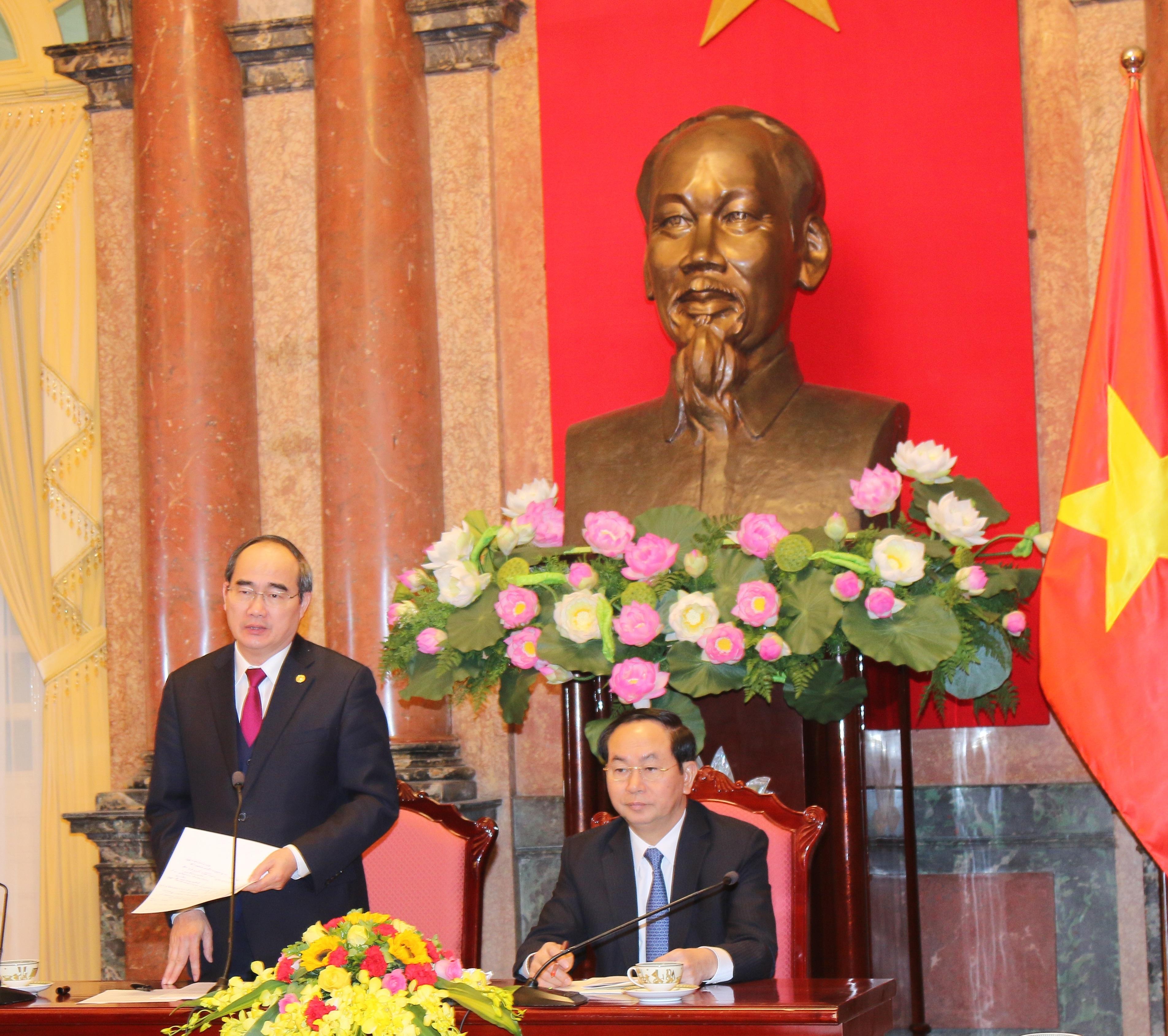 Chủ tịch nước Trần Đại Quang giao nhiệm vụ cho Văn phòng Chủ tịch nước chủ động phối hợp với MTTQ Việt Nam để tham mưu Chủ tịch nước về công tác mặt trận trong các hoạt động đối nội, đối ngoại, đặc biệt thúc đẩy hơn nữa công tác đối ngoại nhân dân, công tác vận động người Việt Nam ở nước ngoài, tăng cường giao lưu, hợp tác phát triển giữa các đoàn thể chính trị - xã hội với bạn bè quốc tế bằng nhiều hình thức phù hợp, góp phần phát triển quan hệ đối ngoại, hợp tác quốc tế, tạo môi trường hòa bình, ổn định để phát triển đất nước.