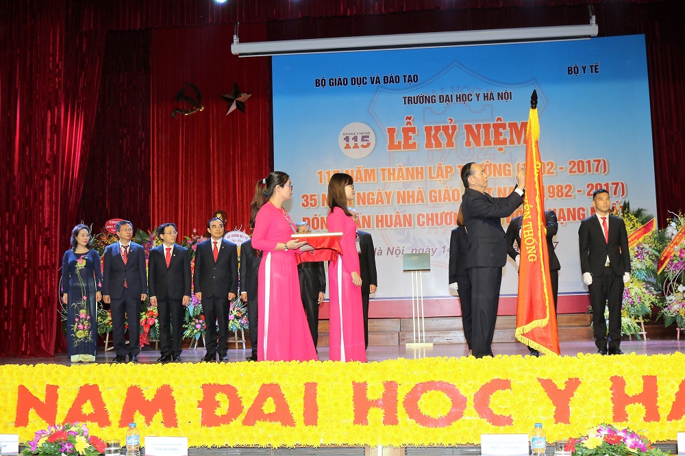 Thay mặt Lãnh đạo Đảng, Nhà nước, Chủ tịch nước Trần Đại Quang đã trân trọng gắn Huân chương Lao động hạng Nhất lên lá cờ truyền thống của Nhà trường, ghi nhận những thành tích, đóng góp to lớn của các thế hệ thầy giáo, cô giáo - thầy thuốc, cán bộ, viên chức, người lao động, học viên, sinh viên Trường Đại học Y Hà Nội.