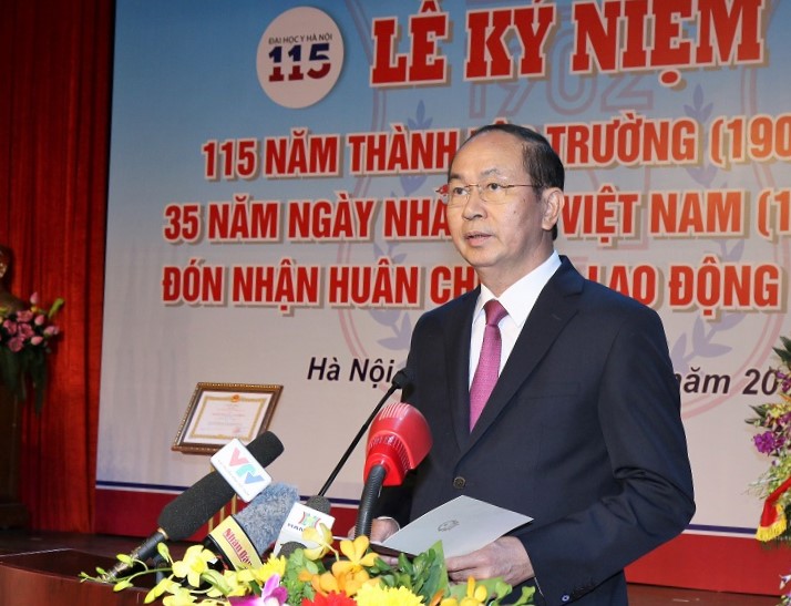 Chủ tịch nước Trần Đại Quang đề nghị, là trường đại học danh tiếng, lâu đời nhất cả nước, Trường Đại học Y Hà Nội cần tiếp tục nỗ lực phấn đấu trở thành trung tâm đào tạo, nghiên cứu y khoa hàng đầu của đất nước, không chỉ đào tạo sinh viên Việt Nam mà cả sinh viên quốc tế; không chỉ triển khai, ứng dụng các thành tựu nghiên cứu ở quốc gia mà cả quốc tế; không chỉ phục vụ cộng đồng người Việt Nam mà cả cộng đồng người nước ngoài. “Thầy thuốc có sứ mệnh cao cả là bảo vệ, chăm sóc và nâng cao sức khỏe nhân dân - thứ tài sản quý giá nhất của mỗi con người. Đại học Y Hà Nội là cái nôi đào tạo ra những người giữ gìn và bảo vệ tài sản quý giá ấy. Đây là trách nhiệm lớn lao và cũng là niềm tự hào của các thế hệ thầy giáo, cô giáo - thầy thuốc, cán bộ, viên chức Nhà trường đồng thời thực hiện hai nhiệm vụ cao quý: Thầy giáo - Thầy thuốc”, Chủ tịch nước Trần Đại Quang nhấn mạnh.