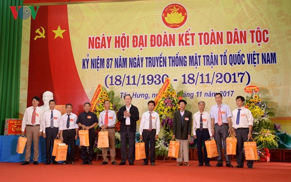 Nhân kỷ niệm 87 năm Ngày truyền thống Mặt trận Tổ quốc Việt Nam (18/11/1930-18/11/2017), sáng 14/11, Chủ tịch nước Trần Đại Quang đã đến dự Ngày hội đại đoàn kết dân tộc tại xã Tân Hưng, huyện Lạng Giang, tỉnh Bắc Giang.