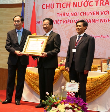 Chủ tịch nước Trần Đại Quang trao Huân chương Lao động hạng Nhì cho Đại sứ quán Việt Nam tại Campuchia - ảnh Tấn Đức