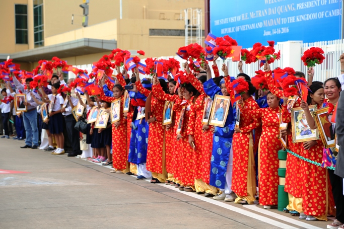 Campuchia trân trọng, nồng nhiệt chào đón Chủ tịch nước Trần Đại Quang, Phu nhân và Đoàn cấp cao Việt Nam - ảnh Tấn Đức