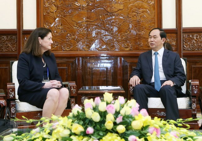 Trân trọng cảm ơn Chủ tịch nước Trần Đại Quang dành thời gian tiếp, bà Monica Whaley đánh giá cao những nội dung ưu tiên của Việt Nam cho Năm APEC 2017.