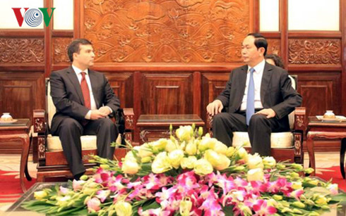 Chủ tịch nước Trần Đại Quang tiếp Đại sứ Tajikistan Parviz Davlatzoda. (Ảnh: VOV)