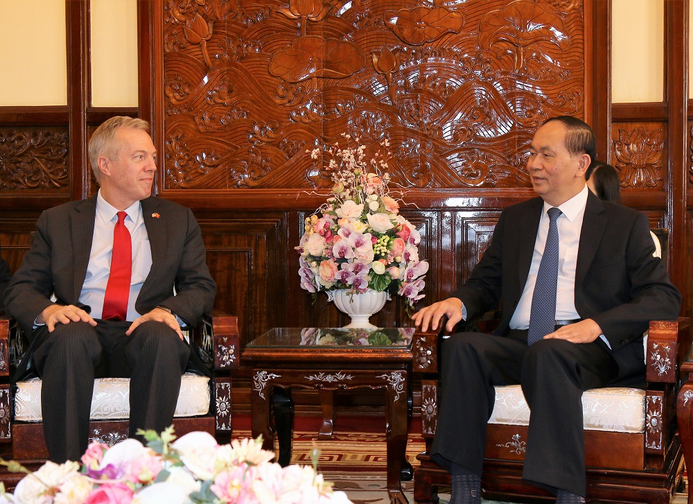 Chủ tịch nước Trần Đại Quang tiếp Đại sứ Ted Osius chào từ biệt nhân kết thúc nhiệm kỳ công tác. (Ảnh: VPCTN)