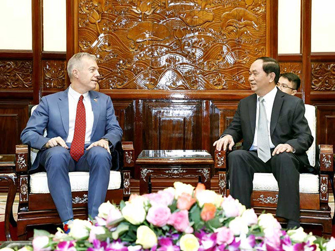 Chủ tịch nước Trần Đại Quang đánh giá cao đóng góp của Đại sứ Ted Osius trong việc thúc đẩy quan hệ Việt Nam-Hoa Kỳ thời gian qua và chúc mừng Đại sứ tiếp tục được Chính quyền Tổng thống Donald Trump giao trọng trách làm Đại sứ Hoa Kỳ tại Việt Nam.