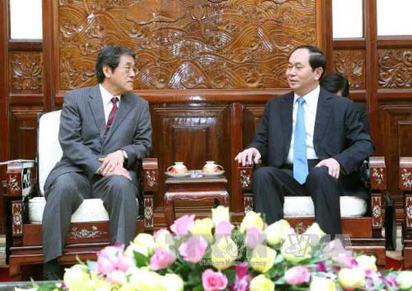 Chủ tịch nước Trần Đại Quang bày tỏ vui mừng khi hai nước thường xuyên trao đổi đoàn cấp cao, Nhật Bản là đối tác thương mại hàng đầu của Việt Nam và cảm ơn Nhật Bản tiếp tục cung cấp vốn ODA giúp Việt Nam phát triển kinh tế-xã hội.