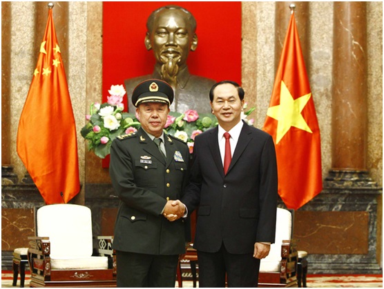 Chủ tịch nước Trần Đại Quang tiếp Thượng tướng Phạm Trường Long, Ủy viên Bộ Chính trị, Phó Chủ tịch Quân ủy Trung ương Trung Quốc. (Ảnh: An Đăng/TTXVN )