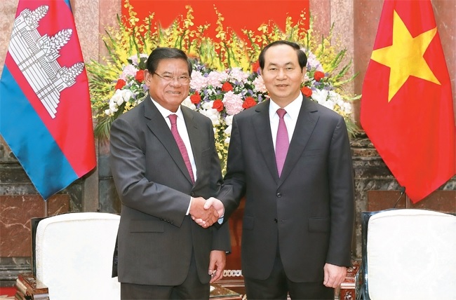 Chủ tịch nước Trần Đại Quang khẳng định Đảng, Nhà nước và nhân dân Việt Nam luôn trân trọng và cảm ơn sự giúp đỡ quý báu của nhân dân Campuchia dành cho nhân dân Việt Nam trong cuộc đấu tranh giải phóng dân tộc trước đây, trong sự nghiệp xây dựng và bảo vệ Tổ quốc hiện nay.