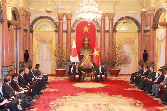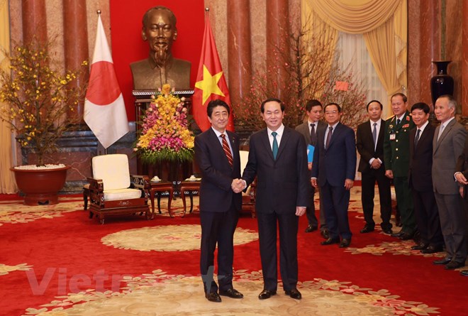 Chủ tịch nước Trần Đại Quang nhiệt liệt chào mừng Thủ tướng Shinzo Abe cùng đoàn đại biểu cấp cao Chính phủ Nhật Bản sang thăm chính thức Việt Nam ngay trong những ngày đầu năm 2017; đánh giá cao và cảm ơn vai trò quan trọng, sự tâm huyết của Thủ tướng Shinzo Abe đối với việc vun đắp cho quan hệ Đối tác chiến lược sâu rộng Việt Nam-Nhật Bản.