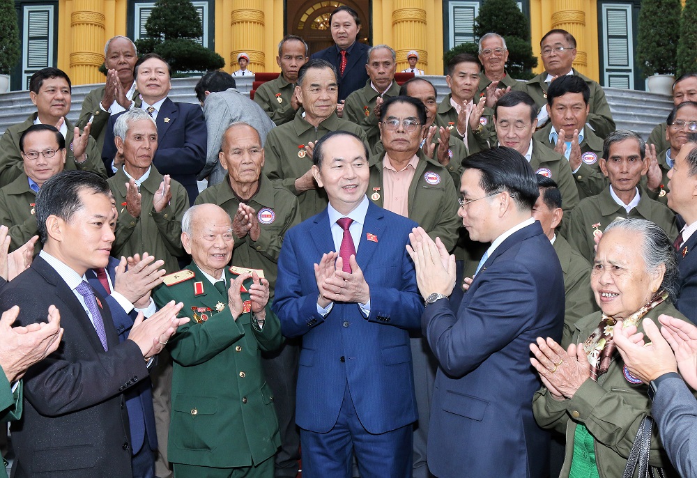 Phát biểu tại buổi gặp mặt, thay mặt Lãnh đạo Đảng, Nhà nước, Chủ tịch nước Trần Đại Quang bày tỏ xúc động đón tiếp các đại biểu đại diện cho những người dân Lào đã từng che chở, giúp đỡ rất tận tình đối với quân tình nguyện và chuyên gia Việt Nam từng chiến đấu và công tác tại Lào, tạo điều kiện để quân tình nguyện Việt Nam hoàn thành xuất sắc nhiệm vụ mà Lãnh đạo hai nước Việt Nam và Lào giao cho.