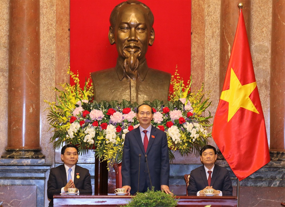 Chủ tịch nước Trần Đại Quang khẳng định: Đảng, Nhà nước và Nhân dân Việt Nam luôn luôn ghi nhớ, tri ân sự ủng hộ, giúp đỡ và những đóng góp to lớn của Đảng, Nhà nước và Nhân dân các bộ tộc Lào đối với Cách mạng Việt Nam. (Ảnh: VPCTN)