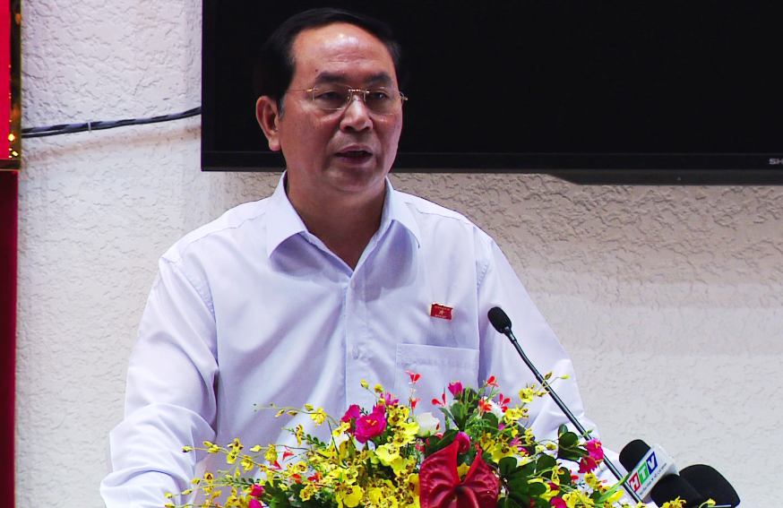 Chủ tịch nước Trần Đại Quang phát biểu tiếp thu ý kiến đóng góp của cử tri - ảnh Quang Trí