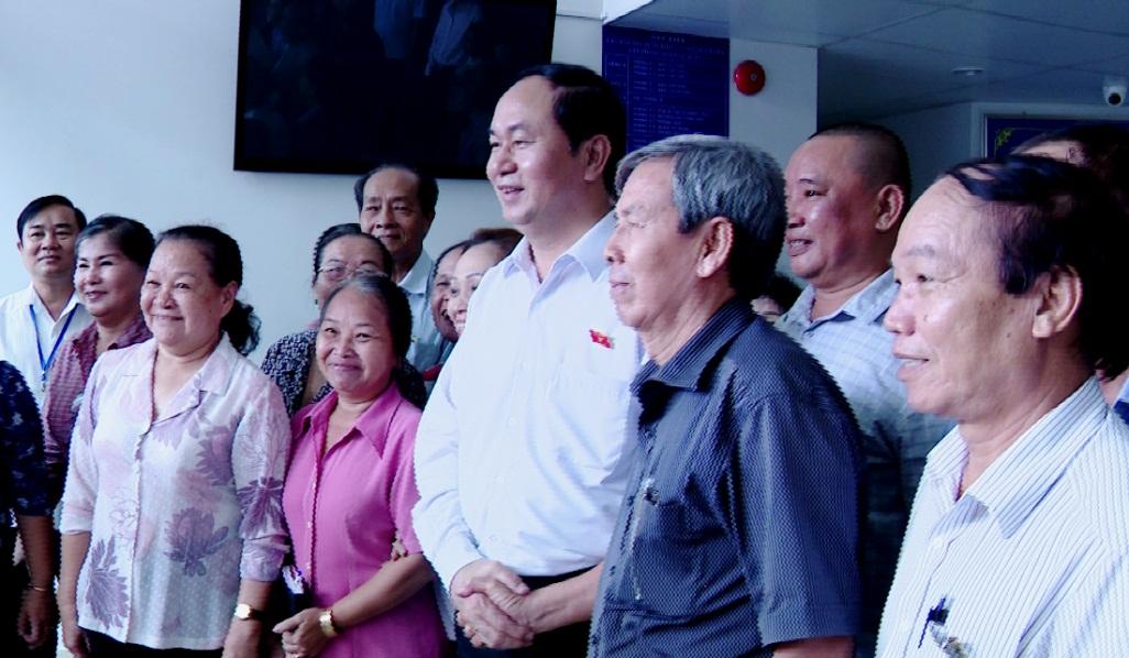 Chủ tịch nước Trần Đại Quang tiếp xúc cử tri Quận 1,3,4 TPHCM. Ảnh: Tấn Đức