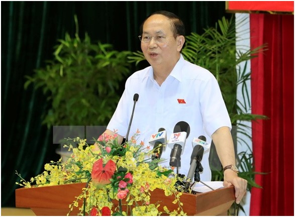 Chủ tịch nước Trần Đại Quang phát biểu tại buổi tiếp xúc cử tri. (Ảnh: Nhan Sáng/TTXVN)
