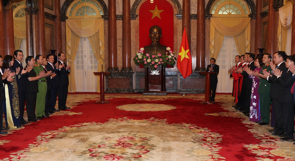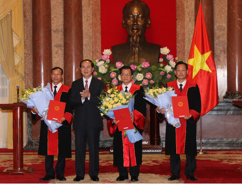 Chủ tịch nước Trần Đại Quang trao Quyết định bổ nhiệm Thẩm phán và Phó Chánh ánTòa án nhân dân tối cao. (Ảnh: VPCTN)