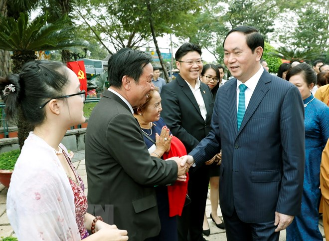 Tối 20/1, tại thành phố Hồ Chí Minh, thay mặt Lãnh đạo Đảng, Nhà nước, Chủ tịch nước Trần Đại Quang và Phu nhân đã tới dự chương trình nghệ thuật Xuân quê hương 2017 với chủ đề “Thành phố mang tên Bác - Khát vọng ngời sáng”, chia vui với kiều bào từ khắp nơi trên thế giới trở về quê hương vui Xuân, đón Tết.