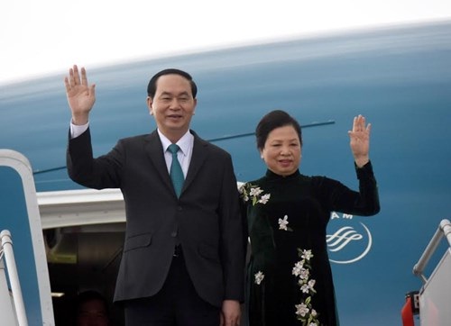 Chiều 26-6, Chủ tịch nước Trần Đại Quang và Phu nhân Nguyễn Thị Hiền, cùng Đoàn đại biểu cấp cao Việt Nam đã tới thủ đô Minsk, bắt đầu chuyến thăm chính thức Cộng hòa Belarus từ ngày 26 đến 28-6 theo lời mời của Tổng thống Belarus A.Lukashenko.