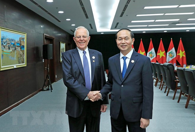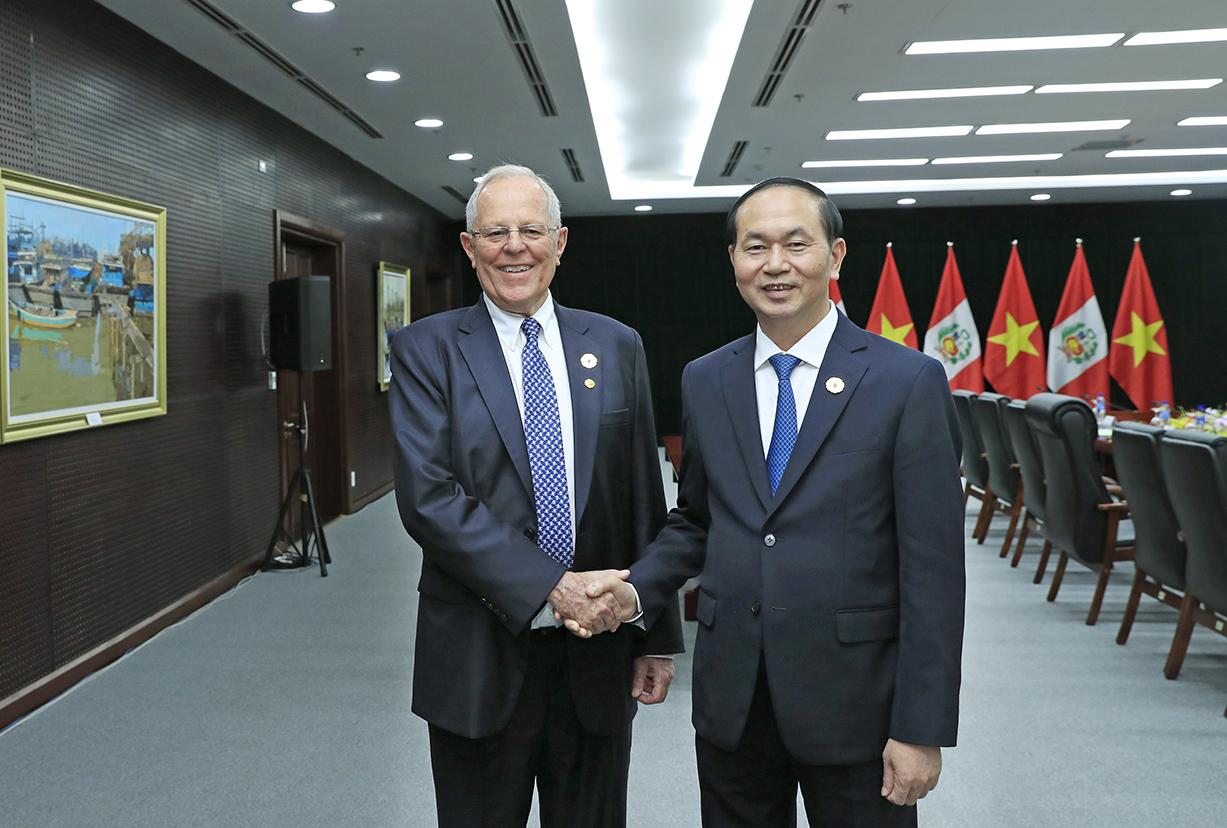 Chủ tịch nước Trần Đại Quang bày tỏ cảm ơn Tổng thống Pedro Pablo Kuczynski và Chính phủ Peru đã chia sẻ kinh nghiệm hợp tác với Việt Nam, đóng góp vào thành công của Năm APEC 2017 nói chung và Tuần lễ Cấp cao APEC tại Đà Nẵng; khẳng định Việt Nam coi trọng và mong muốn tiếp tục tăng cường mở rộng mối quan hệ hữu nghị và hợp tác nhiều mặt với Peru.