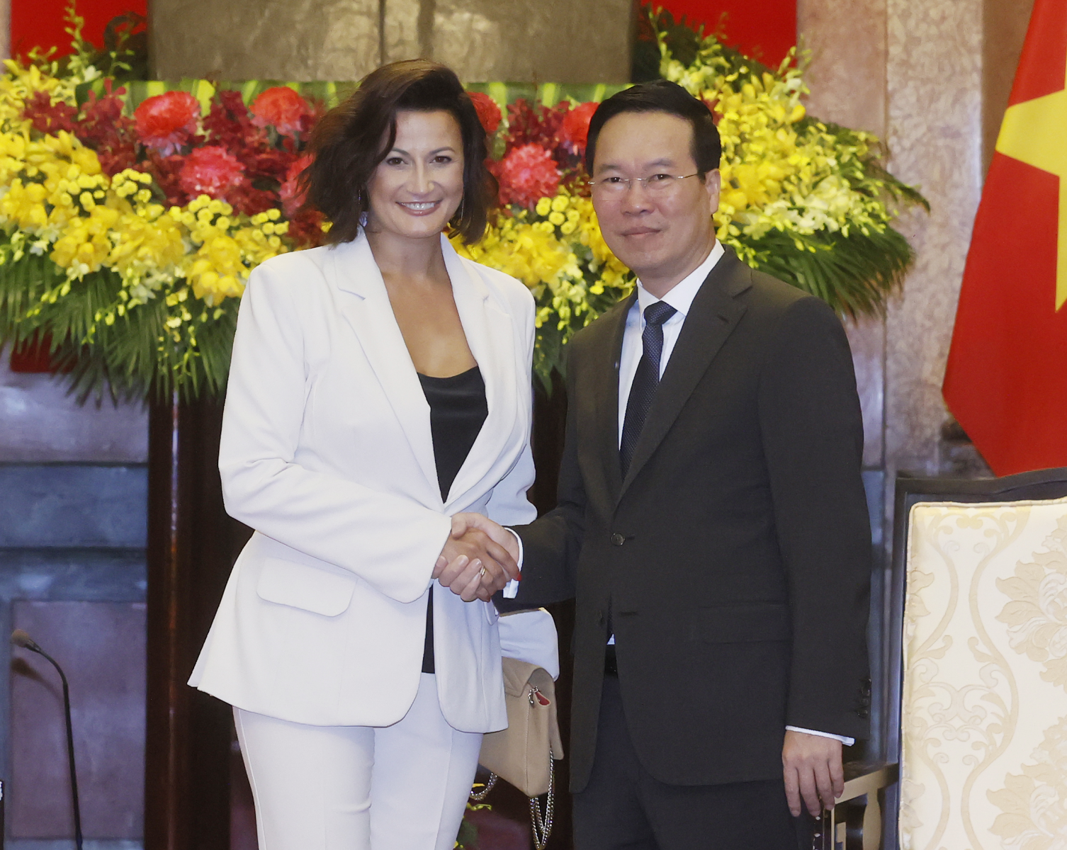 Đánh giá cao các cuộc hội đàm, hội kiến của Chủ tịch Thượng viện Stephanie D’Hose với Chủ tịch Quốc hội Vương Đình Huệ và Thủ tướng Chính phủ Phạm Minh Chính, hai bên đã trao đổi nhiều vấn đề hợp tác cụ thể trong hợp tác song phương, Chủ tịch nước Võ Văn Thưởng tin tưởng những kết quả tốt đẹp này sẽ mở ra chương mới trong quan hệ hợp giữa Quốc hội và nhân dân hai nước.