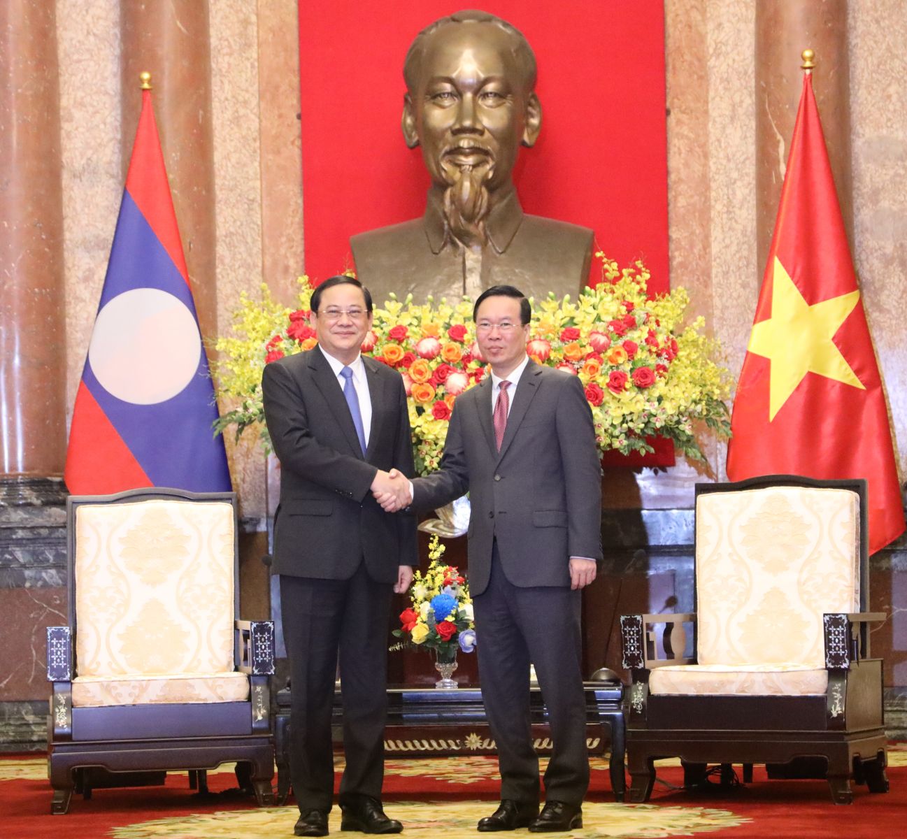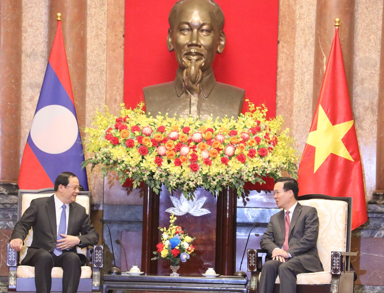 Chủ tịch nước Võ Văn Thưởng đánh giá cao những thành tựu quan trọng mà nhân dân Lào anh em dưới sự lãnh đạo của Đảng Nhân dân Cách mạng Lào và sự chỉ đạo, điều hành của Chính phủ Lào đã đạt được trong thời gian qua; bày tỏ tin tưởng Lào sẽ tiếp tục đạt được nhiều thành tựu mới trong công cuộc phát triển kinh tế xã hội; tiếp tục xây dựng thành công đất nước Lào hòa bình, độc lập, thống nhất, dân chủ và phồn vinh; có vị thế ngày càng cao ở khu vực và trên thế giới.