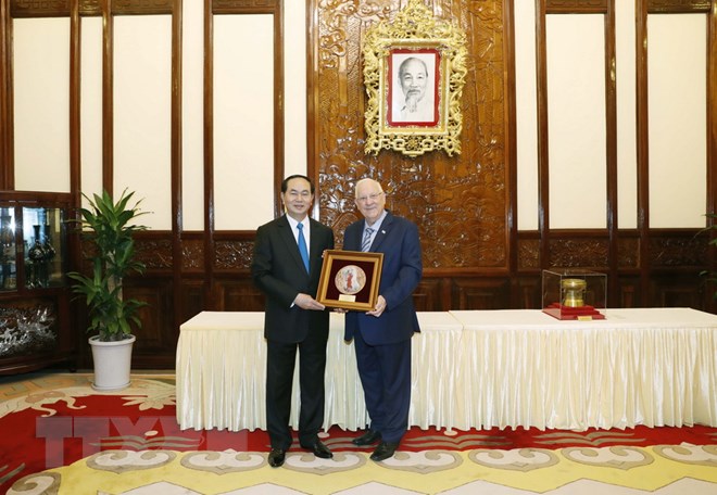 Thay mặt Nhà nước và nhân dân Việt Nam, Chủ tịch nước Trần Đại Quang nhiệt liệt hoan nghênh Tổng thống Israel, Phu nhân cùng các thành viên đoàn đại biểu Nhà nước Israel thăm cấp Nhà nước tới Việt Nam, đánh giá chuyến thăm thể hiện sự coi trọng và mong muốn của các vị lãnh đạo Israel trong việc làm sâu sắc hơn mối quan hệ hợp tác, hữu nghị giữa hai nước.