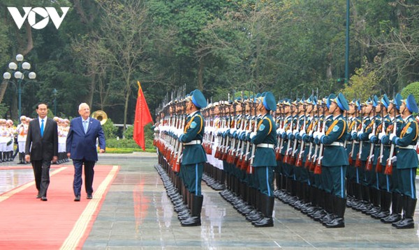 Sáng 20/3, lễ đón chính thức Tổng thống Reuven Ruvi Rivlin và Phu nhân đã được tổ chức trọng thể tại Phủ Chủ tịch theo nghi thức dành đón Nguyên thủ quốc gia. Chủ tịch nước Trần Đại Quang và Phu nhân chủ trì lễ đón.