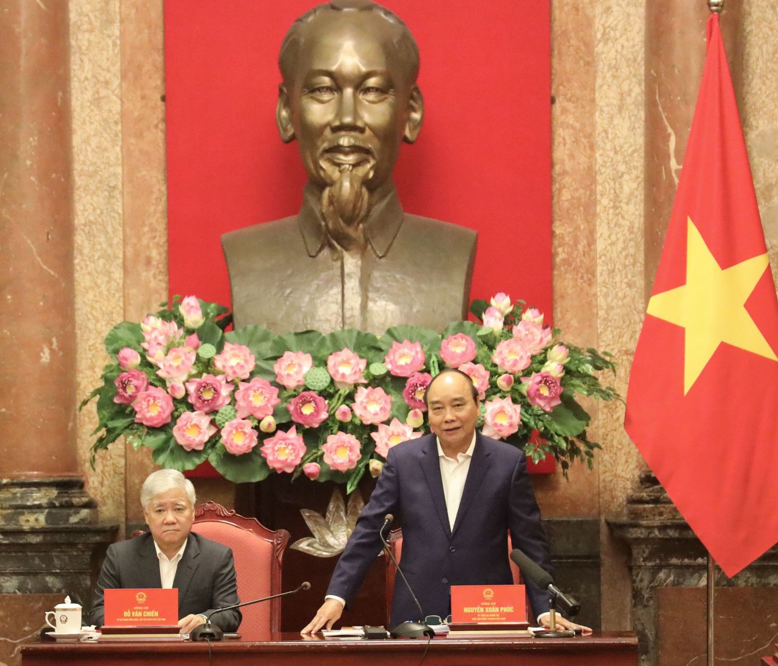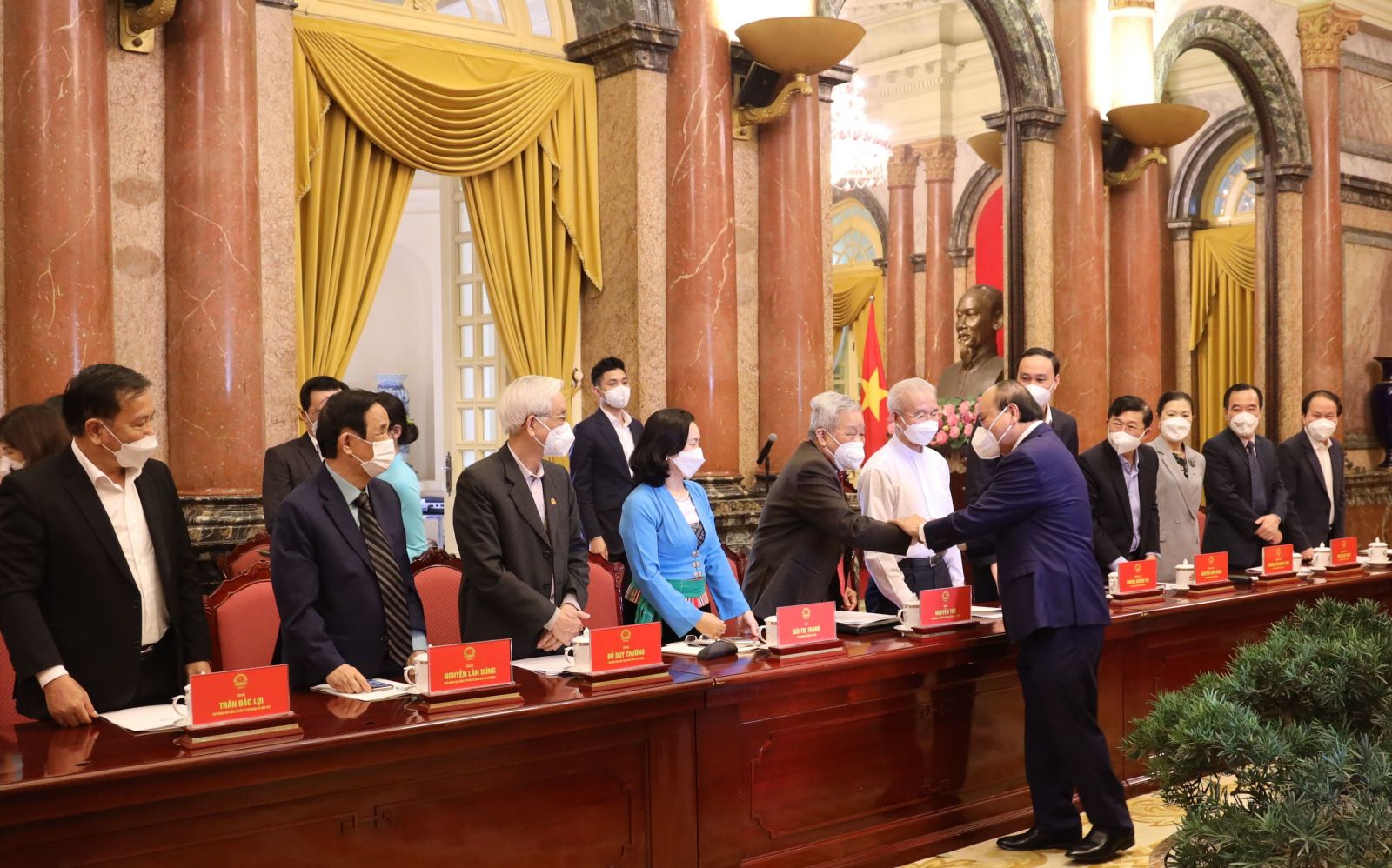 Chủ tịch nước nhấn mạnh trong năm 2021, công tác phối hợp giữa Chủ tịch nước và Đoàn Chủ tịch Ủy ban Trung ương MTTQ Việt Nam đã đạt được nhiều kết quả tích cực, hoàn thành hầu hết các nội dung phối hợp, góp phần nâng cao chất lượng và hiệu quả hoạt động của mỗi bên, củng cố tăng cường khối đại đoàn kết toàn dân tộc. Nổi bật là đã tích cực kêu gọi, động viên nhân dân cùng nhau đẩy lùi đại dịch, qua đó khơi dậy quyết tâm chiến thắng dịch bệnh. Ủy ban Trung ương MTTQ Việt Nam đã tập hợp, phát huy sức mạnh đại đoàn kết toàn dân tộc, kêu gọi nhân dân chung sức đồng lòng, kề vai sát cánh với Đảng, Nhà nước để bảo vệ bản thân và cộng đồng; phát động nhiều hoạt động quan trọng, thiết thực hưởng ứng lời kêu gọi của Chủ tịch nước phát động nhân dân phòng chống dịch bệnh, đến nay đã quyên góp ủng hộ phòng, chống dịch Covid-19 được 21.803,2 tỷ đồng. Đặc biệt, trong các chuyến công tác nước ngoài và hoạt động đối ngoại, Chủ tịch nước luôn quan tâm và có nhiều hoạt động nhằm thúc đẩy ngoại giao vắc xin, hợp tác chuyển giao công nghệ, sản xuất vắc xin. Chủ tịch nước và Ủy ban Trung ương MTTQ Việt Nam tiếp tục động viên các tầng lớp nhân dân tham gia các phong trào thi đua yêu nước, các cuộc vận động lớn do Đảng, Nhà nước và MTTQ Việt Nam phát động, qua đó góp phần động viên, khích lệ, phát huy sức mạnh của khối đại đoàn kết toàn dân tộc trong việc thực hiện thắng lợi nhiệm vụ phát triển kinh tế- xã hội, bảo đảm quốc phòng- an ninh, tăng cường đối ngoại, ổn định và nâng cao đời sống nhân dân.