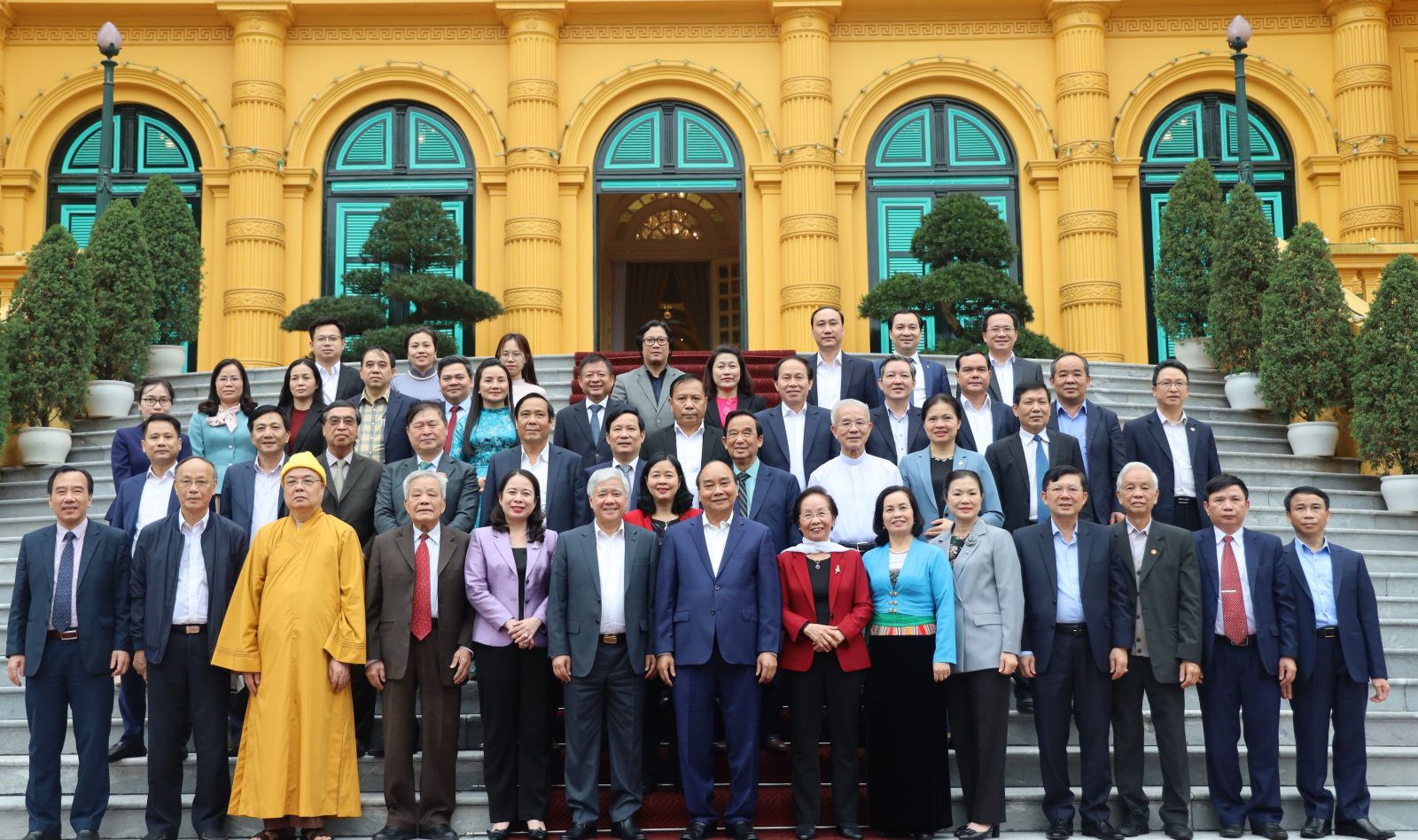 Chụp ảnh lưu niệm với các đại biểu tại Phủ Chủ tịch. Ảnh: VPCTN