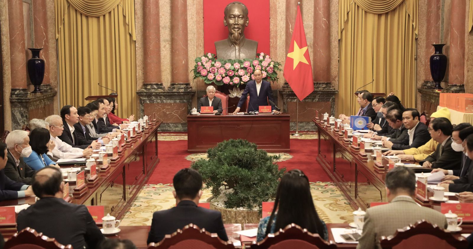 Đề cập năm 2022 là năm thứ 2 triển khai thực hiện Nghị quyết Đại hội XIII của Đảng; có ý nghĩa quan trọng, tạo nền tảng thực hiện các mục tiêu của Kế hoạch phát triển kinh tế- xã hội 5 năm 2021 – 2025, Chủ tịch nước đề nghị Ủy ban Trung ương MTTQ Việt Nam tiếp tục nghiên cứu, quán triệt kỹ phát biểu chỉ đạo của Tổng Bí thư Nguyễn Phú Trọng tại Hội nghị của Ủy ban Trung ương MTTQ Việt Nam ngày 16/8/2021 về năm nhóm nhiệm vụ, giải pháp để MTTQ các cấp tập trung triển khai thực hiện Nghị quyết Đại hội XIII của Đảng đến các cấp MTTQ và các tổ chức thành viên, từ đó làm tốt hơn nữa vai trò trong khối đại đoàn kết toàn dân tộc, tập hợp, vận động nhân dân, góp phần cùng cả nước thực hiện thắng lợi Nghị quyết Đại hội XIII.