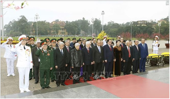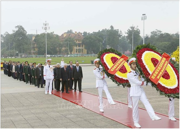 Kỷ niệm 89 năm Ngày thành lập Đảng Cộng sản Việt Nam (3/2/1930 - 3/2/2019) và đón Tết cổ truyền Kỷ Hợi, sáng 1/2/2019, Đoàn đại biểu Lãnh đạo Đảng, Nhà nước, Mặt trận Tổ quốc Việt Nam, do Tổng Bí thư, Chủ tịch nước Nguyễn Phú Trọng dẫn đầu, đến đặt vòng hoa và vào Lăng viếng Chủ tịch Hồ Chí Minh.